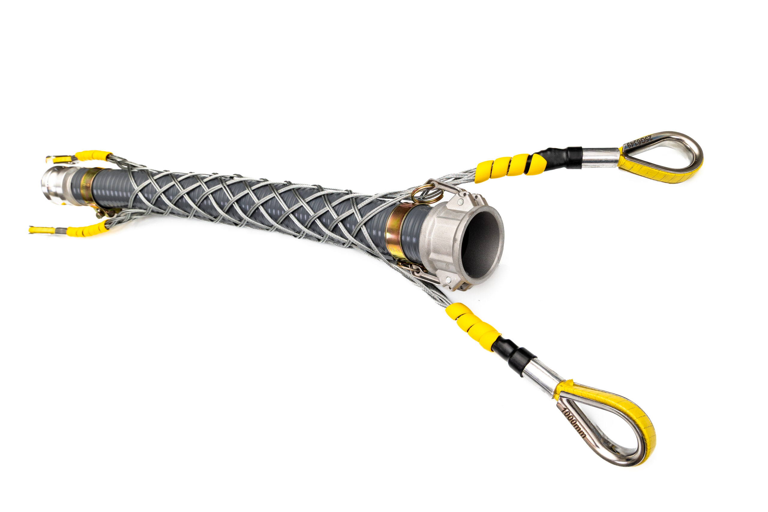 Each restraint features thimble eyes that are used as shackle points when fitted over the hose.